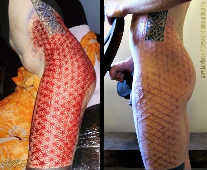 Many consider self-incisions or self-harm as wrong but it takes a different perspective to find the beauty in gruesome situations. A new form of body art has come under question as to the ethics of the practice. This new form of tattooing, called scarification, has become more popular among extreme tattoo fanatics. According to Wikipedia, scarification “involves scratching, etching, burning / branding, or superficially cutting designs, pictures, or words into the skin as a permanent body modification.” Essentially, this practice is using self-harm to create works of art on human canvases.