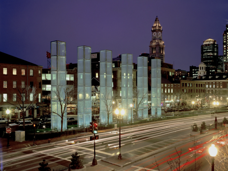 My best friend and I were walking to our dinner reservation in Boston’s Little Italy one evening, when we stumbled upon 6 glass towers that appeared smoky and ominous. My first thought? “No, that can’t possibly be an interpretation of the Holocaust.” Sure enough, the plaque on the wall proved